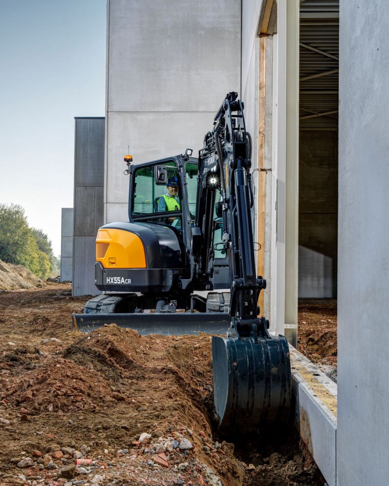 🚧 Ciasny plac budowy? Żaden problem. Hyundai HX55A CR to minikoparka z konstrukcją o małym promieniu, która zapewnia dużą moc kopania w miejscach o ograniczonej przestrzeni. 🚧