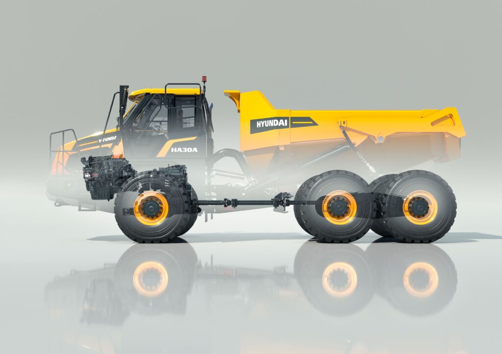 - Inteligentna skrzynia ładunkowa: Tylna rama ze wzniosem obniża środek ciężkości skrzyni ładunkowej i zapobiega wysypywaniu urobku (nawet tego zawodnionego!), co eliminuje konieczność stosowania klapy.